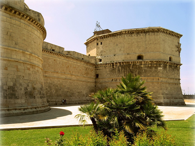 Para llegar a la última etapa de nuestro itinerario, bordead las murallas de vuestra izquierda hasta encontraros aproximadamente en la parte opuesta de la Roca en el muelle de San Teofanio.
